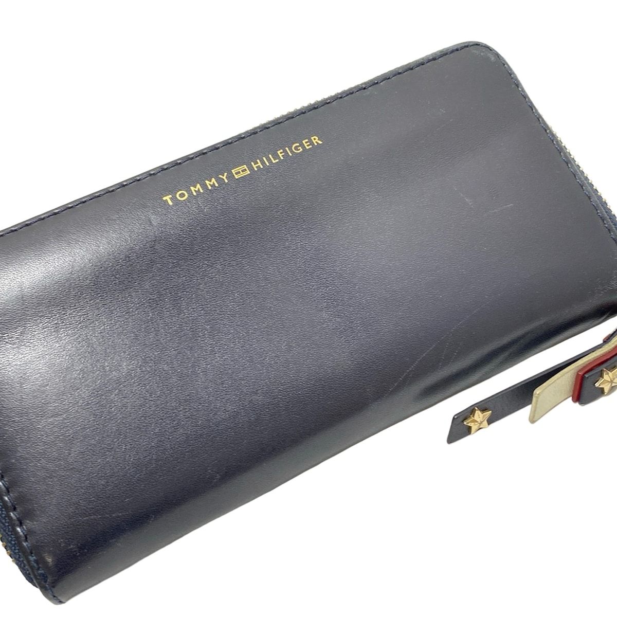 TOMMY HILFIGER トミーヒルフィガー 長財布 - ダークネイビー ラウンドファスナー レザー
