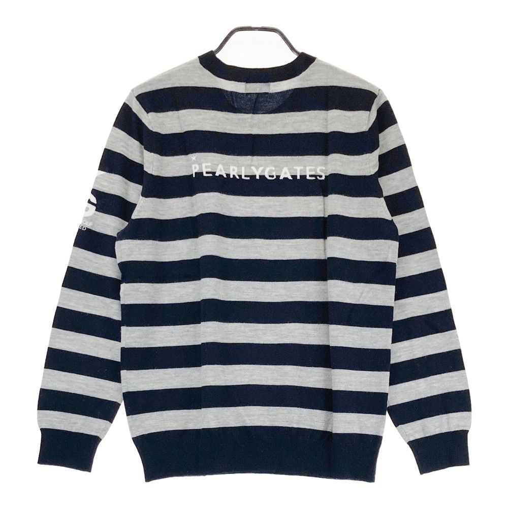 サイズ 6 PEARLY GATES パーリーゲイツ ウール ニットセーター ボーダー柄 グレー系 ゴルフウェア メンズ ストスト