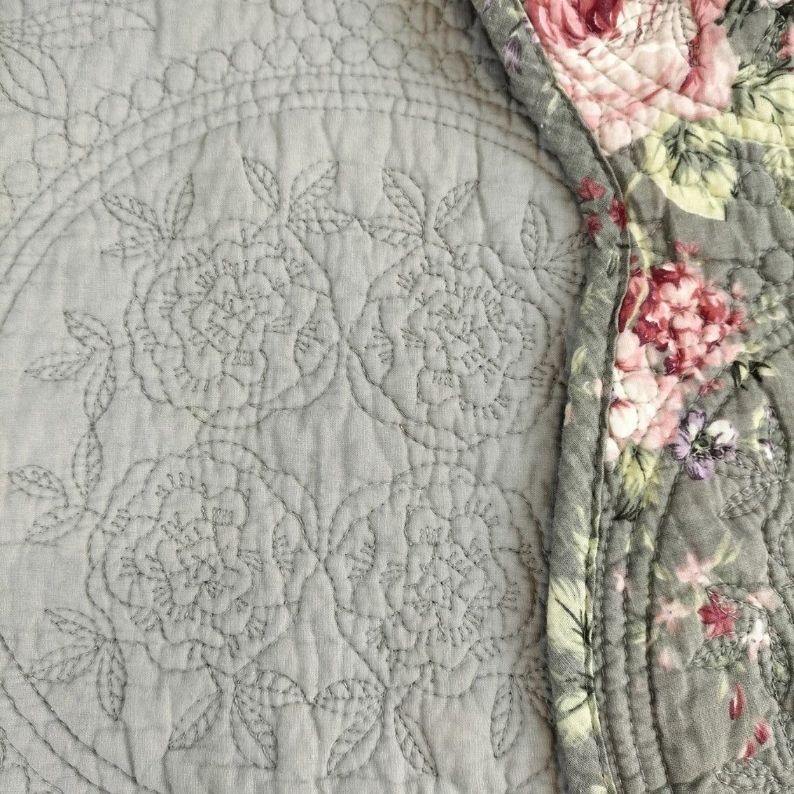 マルチカバー 綿100% ベッドカバー ソファ リバーシブル 刺繍 上品 キルト グリーン 薔薇 薔薇柄