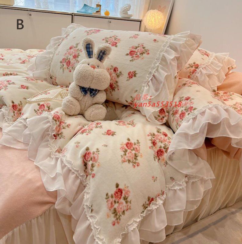 布団カバーセット プリント花柄 フフリル レース 韓国風 寝具カバーセット セミダブル ダブル 冬 シングル 4点セット 掛け布団カバー 3点セット ベッド用品 yan 5 a 553518