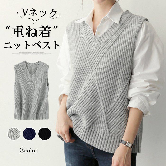 ニットベスト レディース ベスト vネック ノースリブ トップス ニット セーター ゆったり カジュアル 通勤 通学 重ね着 20代 30代 40