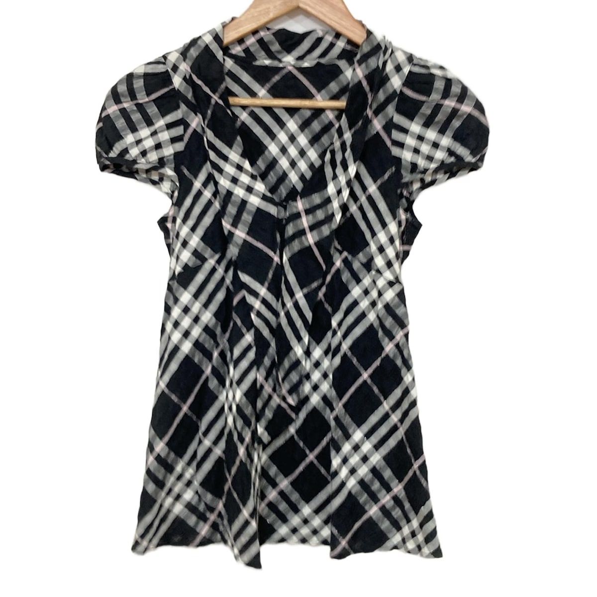 Burberry Blue Label バーバリーブルーレーベル 半袖カットソー サイズ36 S レディース - 黒×白×ライトピンク ボウタイ チェック柄