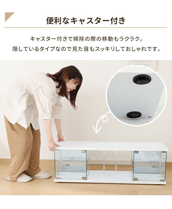 テレビ台 ケース TVボード ローボード ガラス 扉付き 背面ミラー付き 幅110 奥行30 高さ37 ディスプレイ