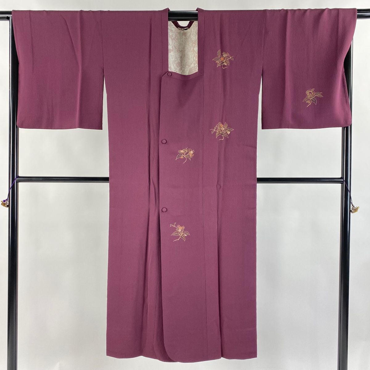 道行 身丈135 cm 裄丈69 L 和装コート 角衿 草花 金彩 金糸 赤紫 正絹