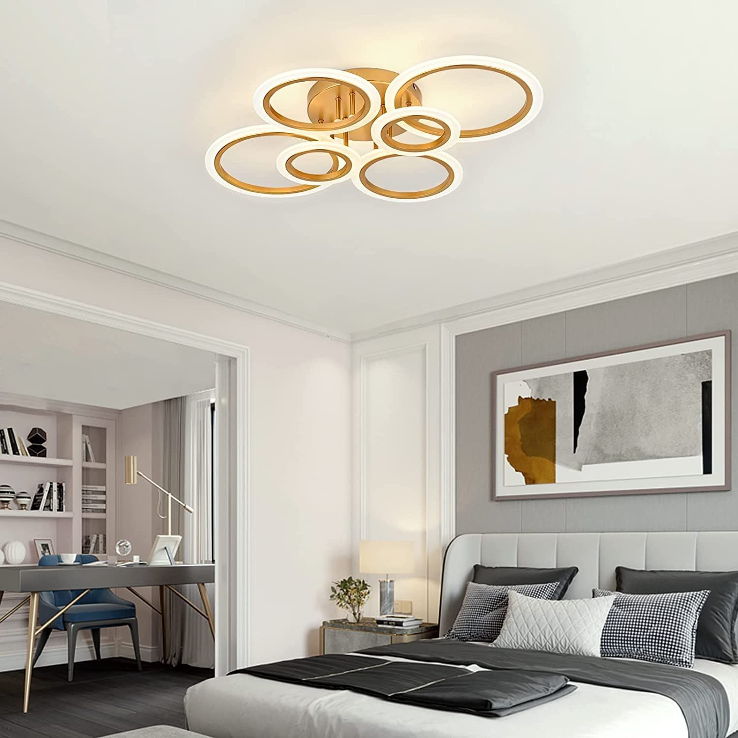 ??【北欧の天井ランプ】6つの丸または8つの丸を選択。リビングルームやダイニングルームのテーブルの上でも、美しく居心地の良い雰囲気を演出し、装飾として使用できます。 簡単な構造と簡単な取り付け。 素材:金属、アクリル。 高品質の素材は安全性と耐久性に優れており、天井の下に直接取り付けられる LED シーリングライトです。標準電圧:AC85-265V、72/134W