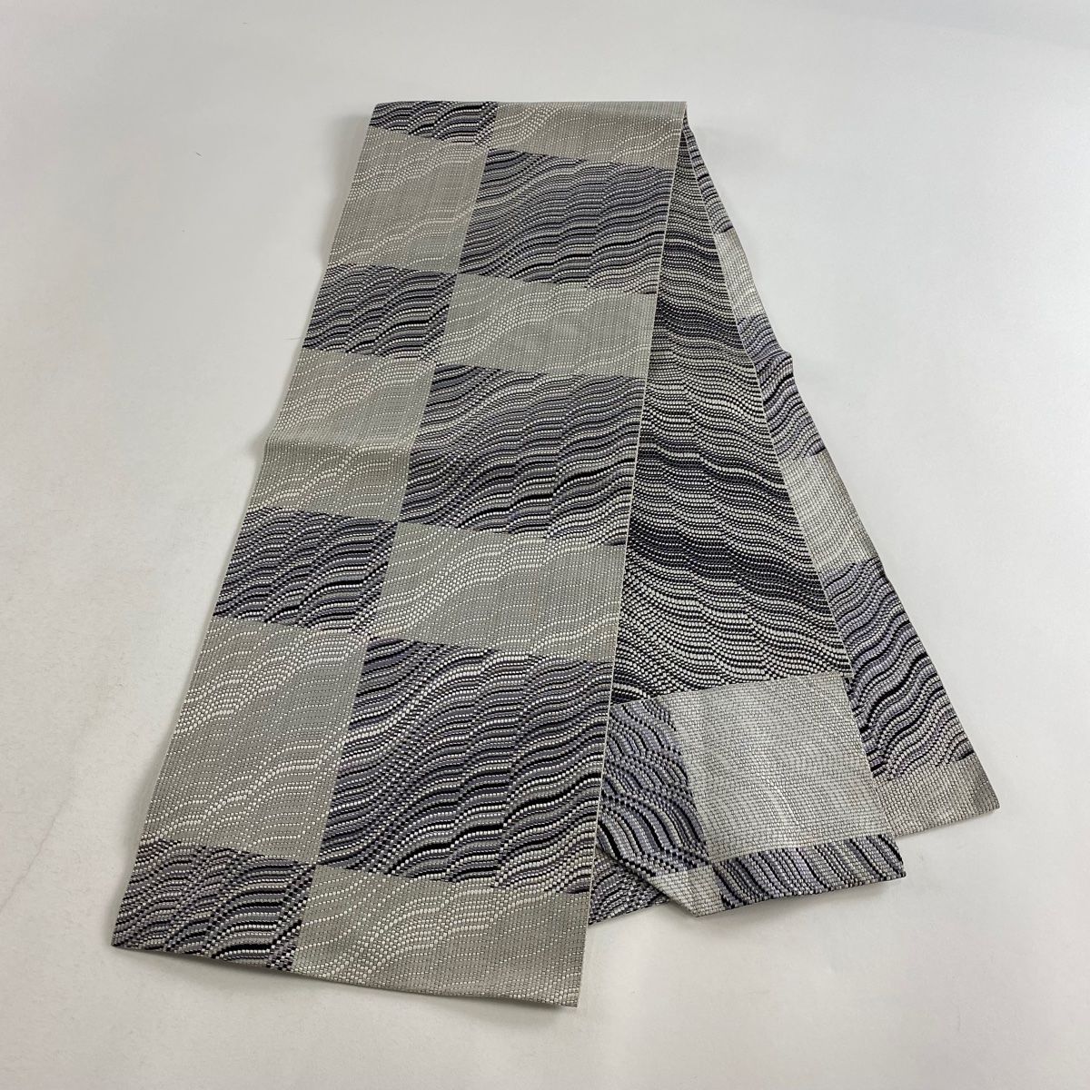 名古屋帯 秀品 松葉仕立て 八寸名古屋帯 変わり市松 幾何学模様 灰紫 正絹