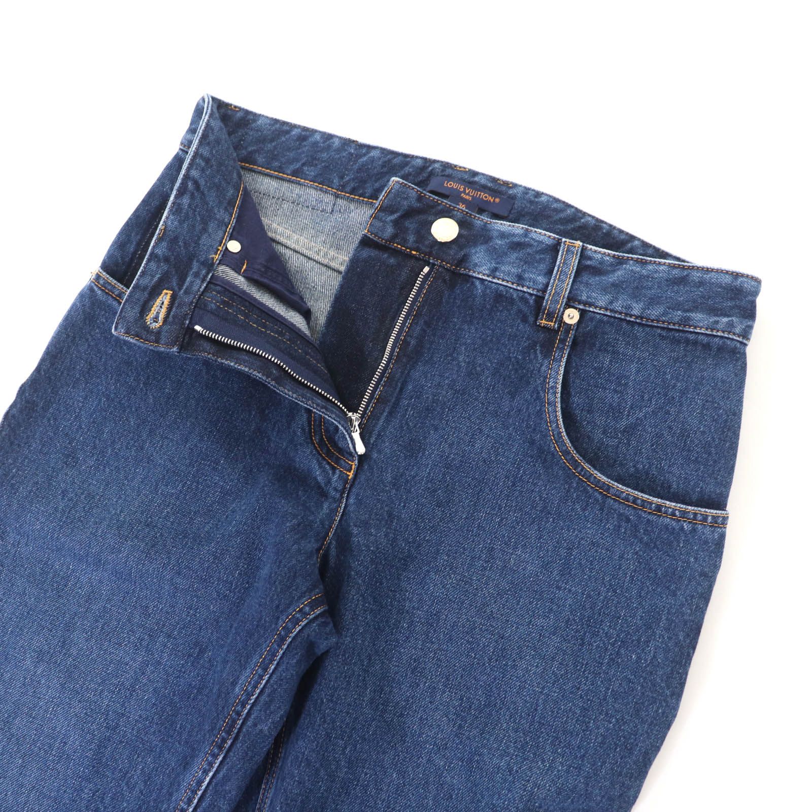 LOUIS VUITTON ルイヴィトン 24 AW コットン100% モノグラムレザーパッチ付 カットオフ デニムパンツ インディゴ 36 き イタリア製 レディース