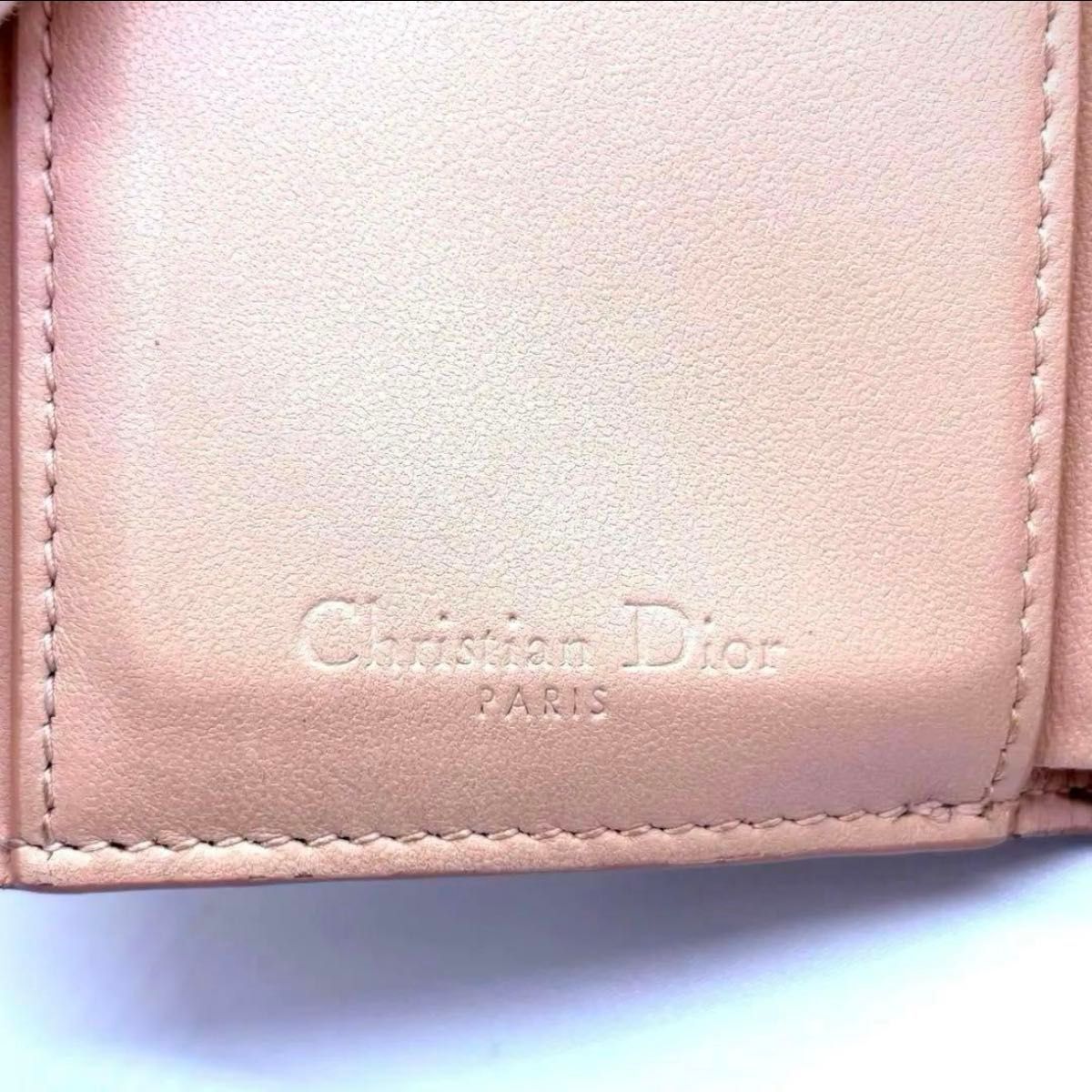 モデル Christian Dior クリスチャンディオール レディディオール カナージュ コンパクトウォレット 三折り財布 ピンク ラムスキン ブランド