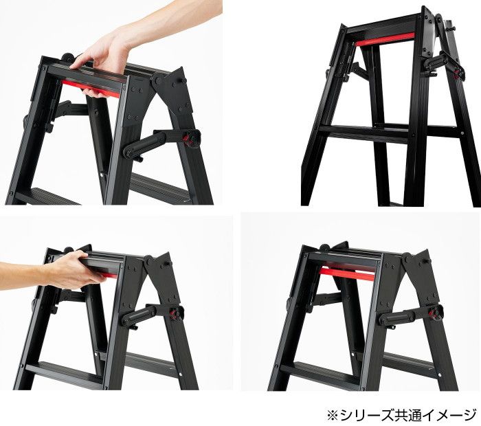 ●中折れ式:脚立の設置・収納時の開き止め金具の掛け替えの手間が省ける機構です。
