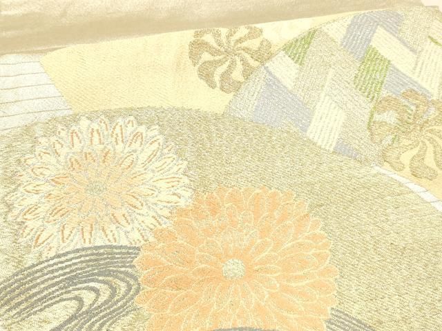 平和屋着物 夏物 アンティーク 大正ロマン 丸帯 地紙流水花文 金銀糸 正絹 cm