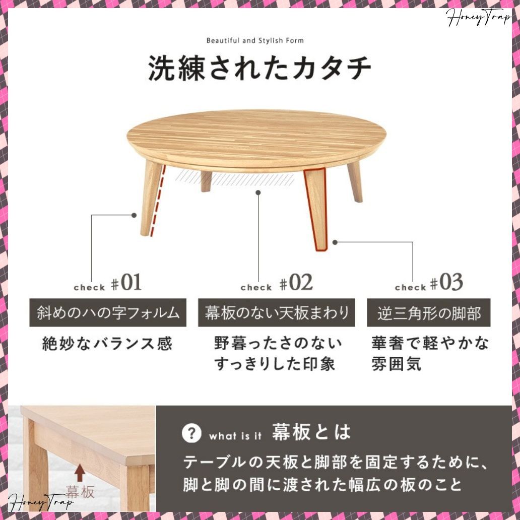 表情豊かな天然木突板を使用した洗練されたデザインの円形こたつです。セーターのような立体的なデザインがおしゃれな掛け布団セット