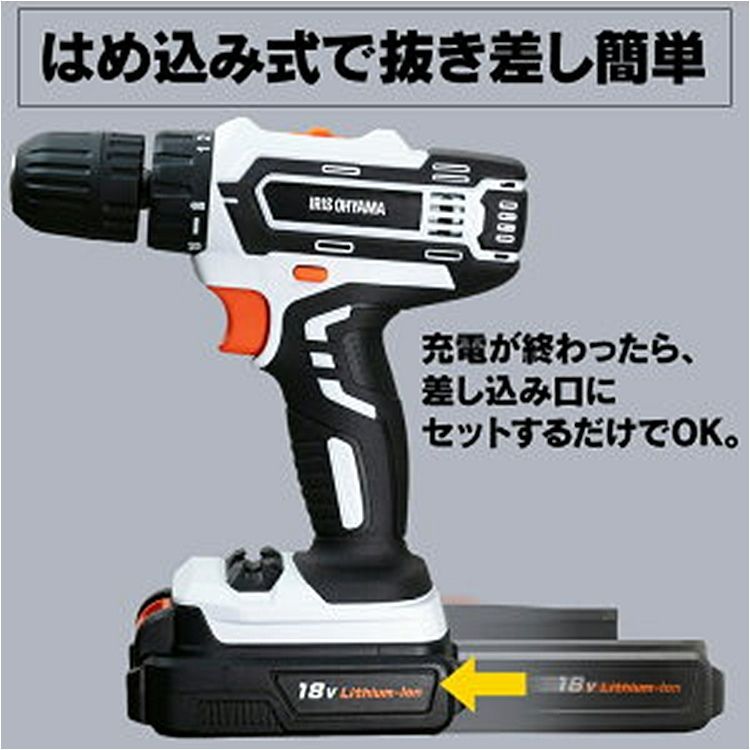 バッテリー セット 電動ドライバー 充電式 ドライバドリル18 V JCD 25 ホワイト ドライバドリル 電動ドリル 電動ドリルドライバー ドライバー ドリル ドリルドライバー 工具 電動工具