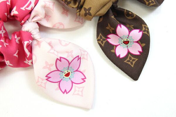 ルイヴィトンシュシュセットシュシュチェリーブロッサムM96067サクラブラウンピンクシルク100%新品LV×TM村上隆ヘアアクセサリーヘアゴムモノグラムレディースLOUISVUITTON