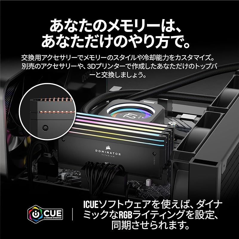 商品名:CORSAIR DDR5-6400MHz デスクトップPC用メモリ DOMINATOR TITANIUM DDR5シリーズ (PC5-51200) Intel XMPメモリキット 64GB ブラック [16GB×4枚] CL32 CMP64GX5M4B6400