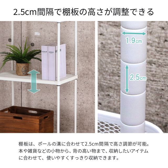 ・ポール径19mm、奥行35cmとスリム設計、隙間収納にも。
