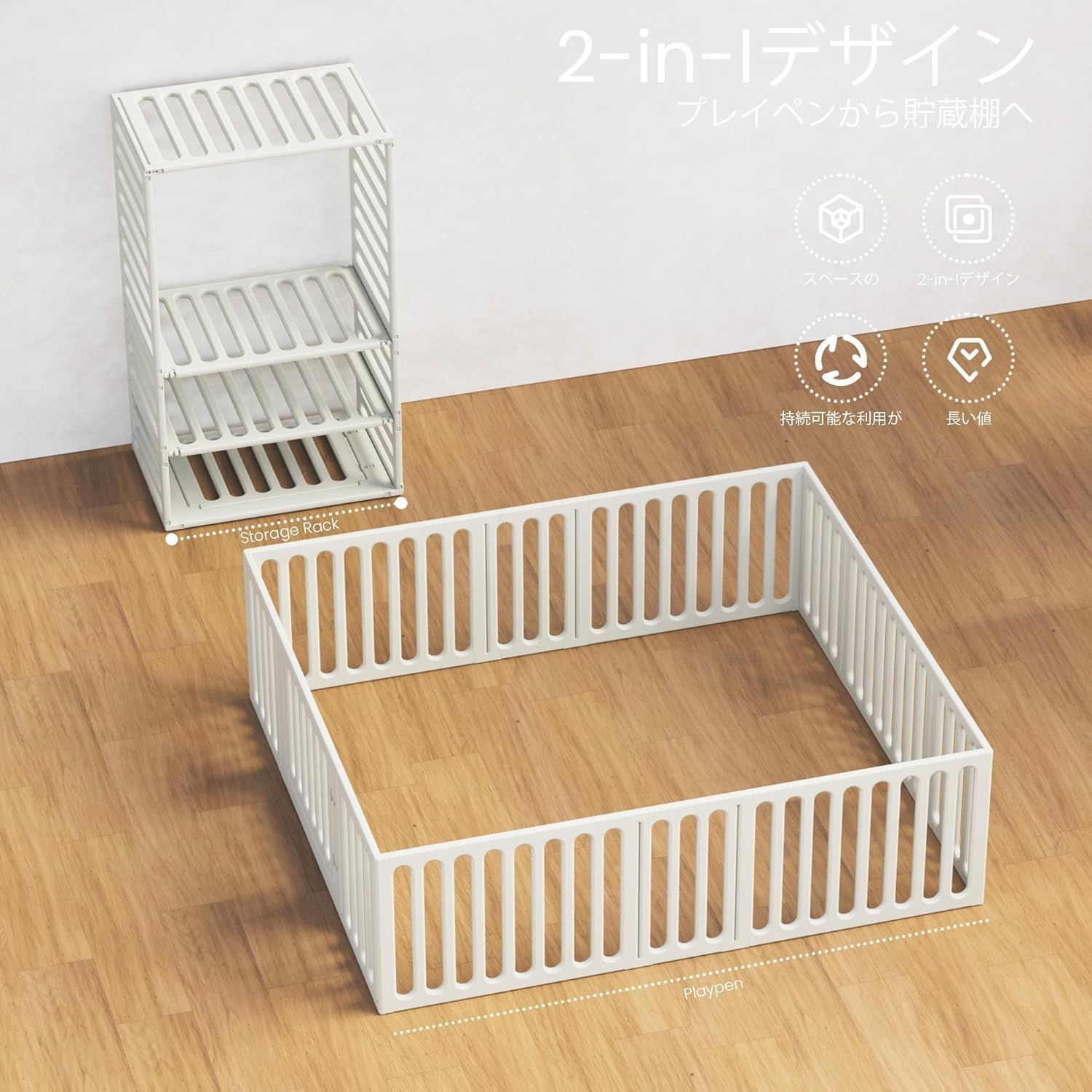 ●多機能使用:この多用途のベビープレイペンは、使用しないときには収納ラックとしても利用でき、経済的に持続可能な選択肢です。その適応可能なデザインは長期間の使用を確保し、不必要な廃棄物を減らしながら収納スペースを最適化します。