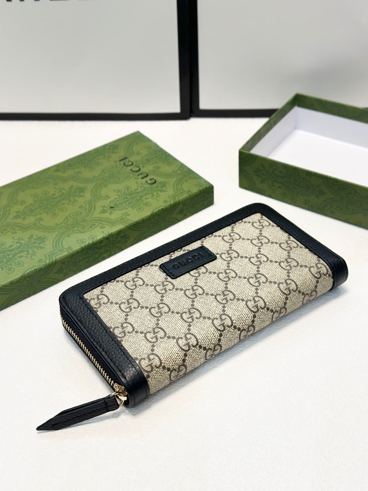 こちらは、GUCCI グッチのワンジップ仕様のハンドバッグです。黒色で、サイズは 20x10 です。オリジナルの一等地革を使用し、プレス加工により高級感あふれる質感を演出しており、手触りも抜群です。細部にこだわった作りで、多数のカードスロットと大容量の収納スペースが特徴です。現在在庫あり、すぐにお買い求めいただけます。