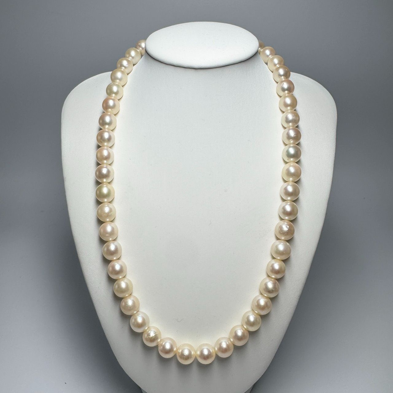 テリ抜群 大珠 8.5-8.7 mm アコヤ 本真珠ネックレス SILVER刻印 43.5 cm 47.6 g パール クリーム系 ジュエリー あこや 宝石
