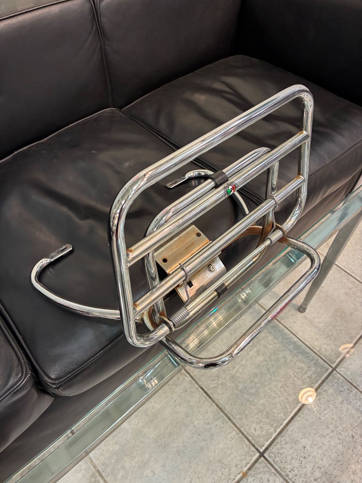 クッピーニのベスパLX用スタンドリアキャリアです。サビ等も有りますので、リーズナブルな価格にて出品させて頂きます。定価¥23100です。あくまで新品とご理解の程よろしくお願い致します。
