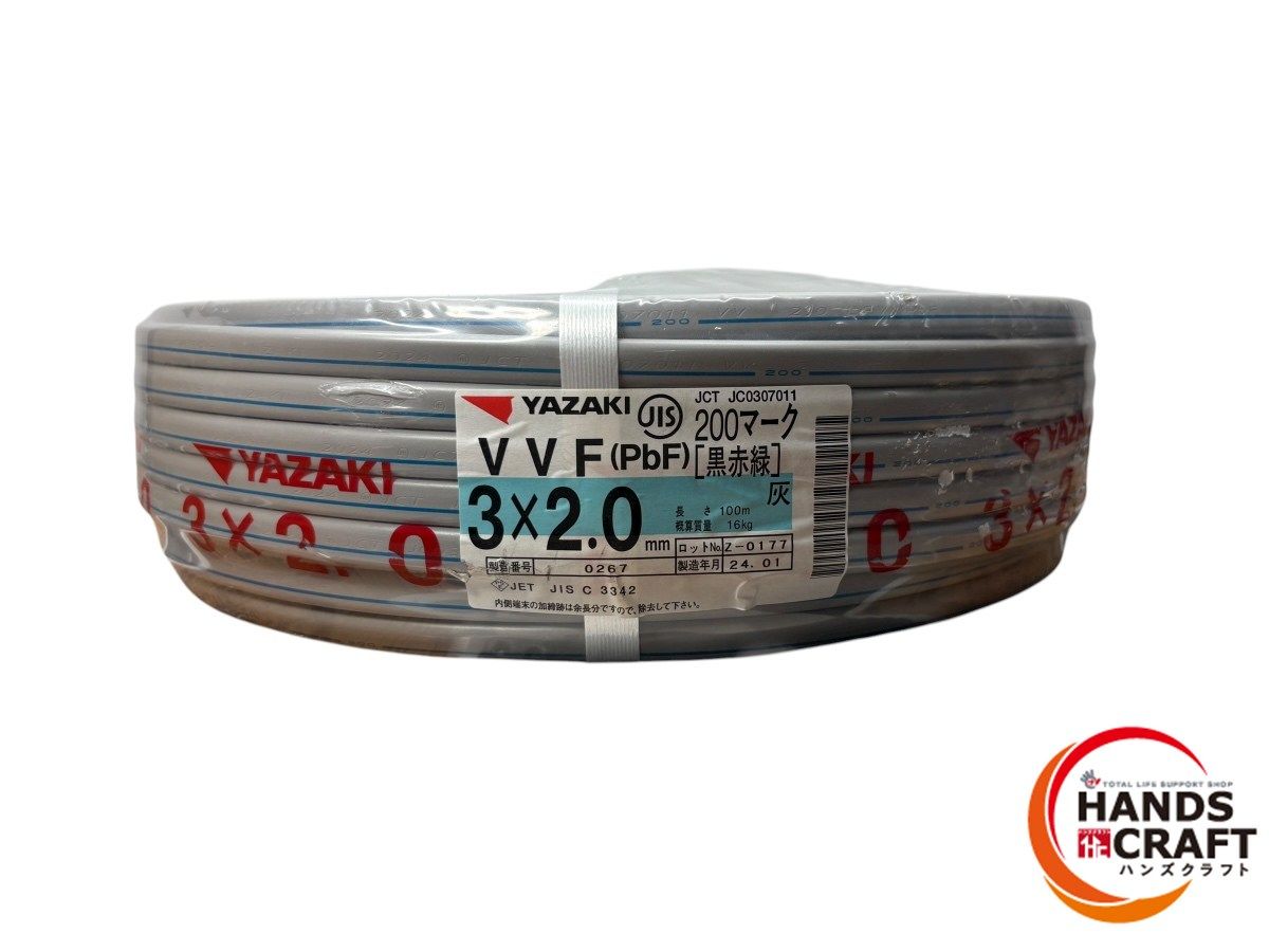 YAZAKI ヤザキ .0 VVF 黒 赤 緑 200マーク ライン入り 100 m 製
