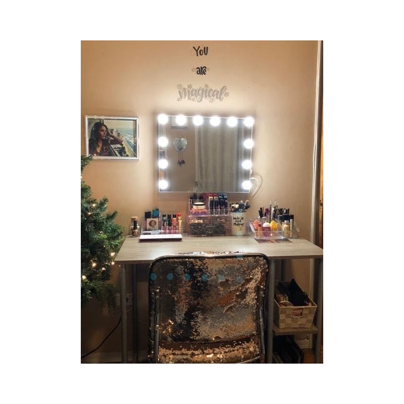 商品名:FENCHILIN 化粧鏡 女優ミラー ハリウッドミラー 壁掛け/卓上両用 ライト付き 鏡 三色照明モード 明るさ調節可能 14個LED電球付き 10倍拡大鏡付き 50x40cm USB-DCケーブル給電