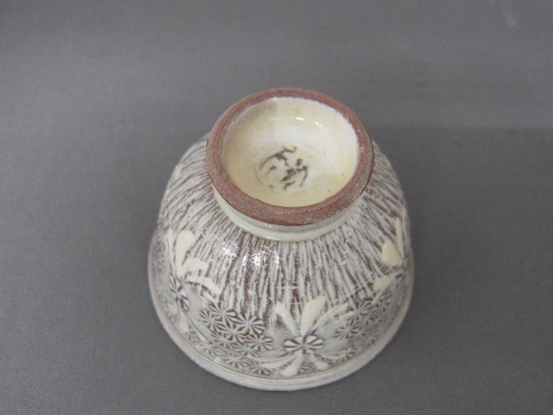 京焼(清水焼)の紫三島の煎茶茶碗です。