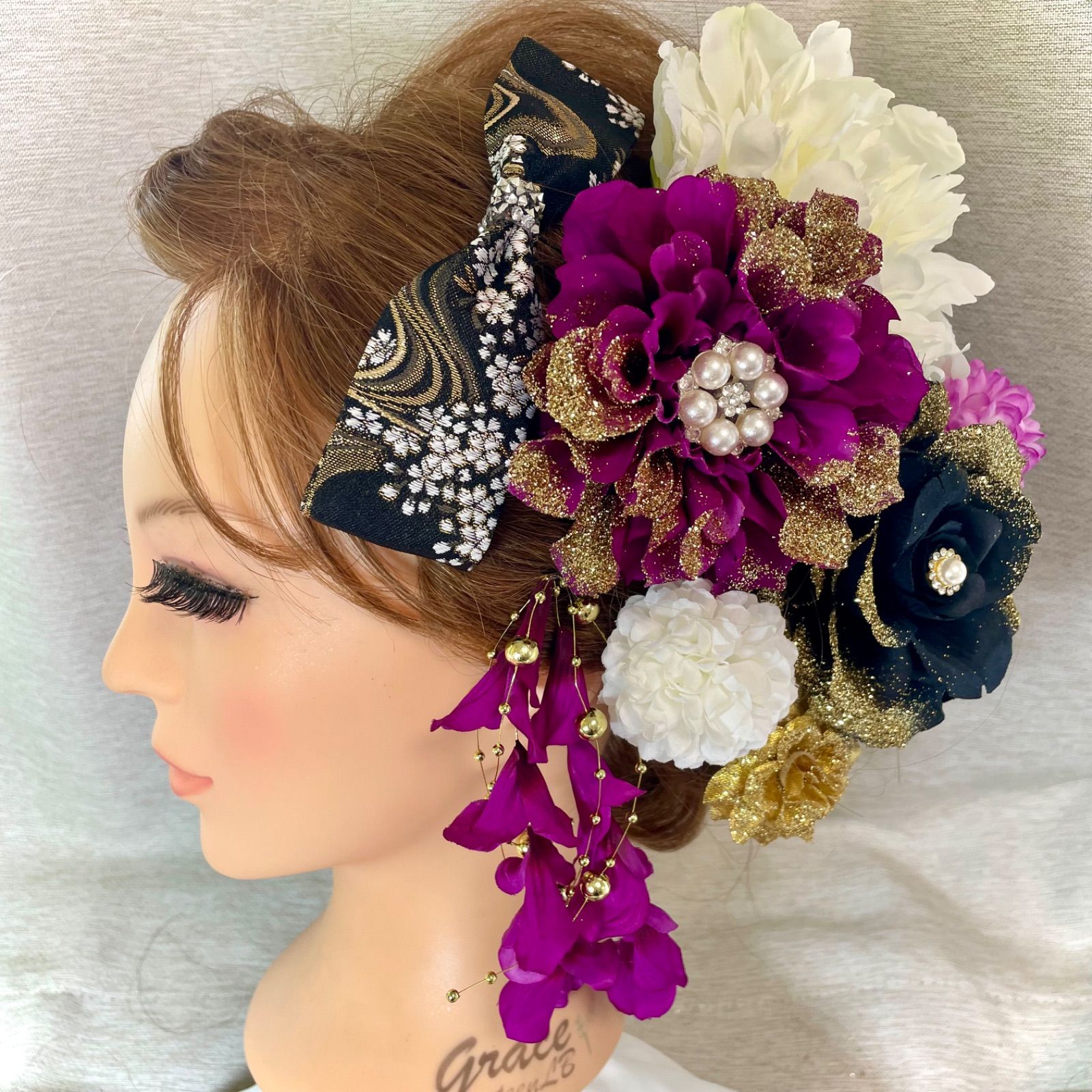 紫 和装髪飾り 振袖髪飾り 成人式髪飾り 着物髪飾り 色打掛髪飾り 結婚式 イベント髪飾り