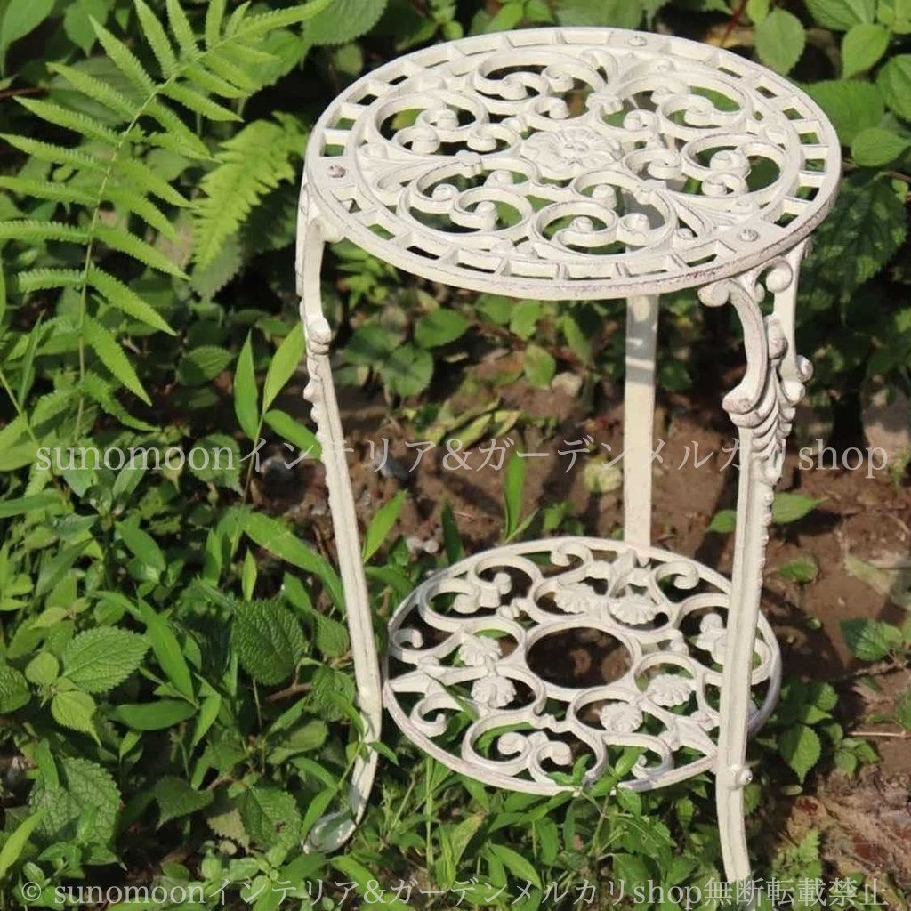 ヴィンテージ調 シャビーシック ホワイト グリーン ガーデン インテリア プランタースタンド 雑貨 シャビー加工 おしゃれ ガーデンインテリア お洒落 ガーデン雑貨 庭の装飾 8-14 ガーデニング プランターラック 金属