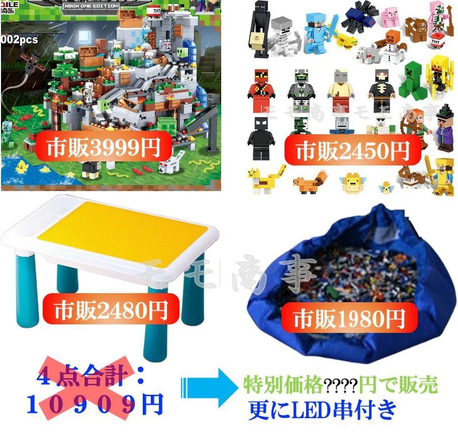 レゴ 互換 ブロック マイクラ風 セット 山の洞窟1000 PCSとミニフィグ28体と収納プレイマットとLEDライトとマルチデスクのセット L