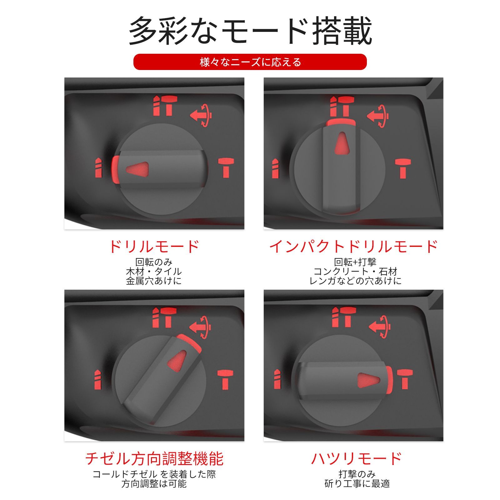 ドリルモード(回転):木材・金属などの穴あけに