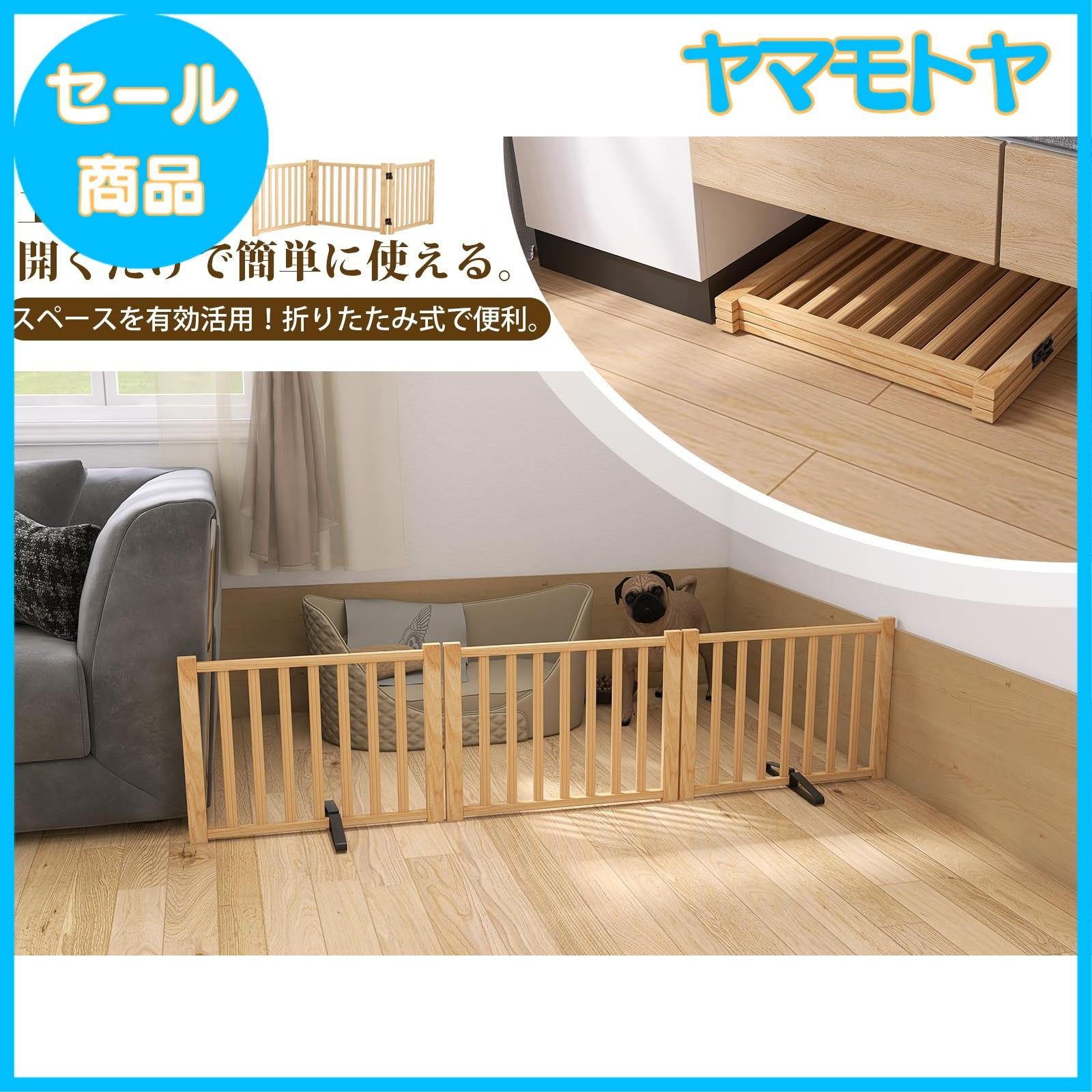 特売 ペットゲート 木製犬ゲート YOCAN ペットフェンス 高さ43 cm 長さ175 置くだけゲート折りたたみ 倒れない いぬ 柵 室内 犬脱走防止 飛び出し防止 小型犬 中型犬用 天然木 パネル