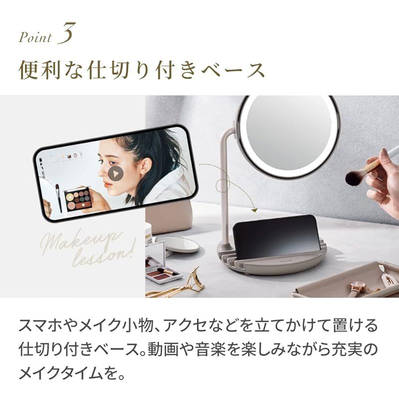 ?【スマホや小物が置ける仕切り付きベース】スマホで動画や音楽を楽しみながら充実のメイクタイムを。