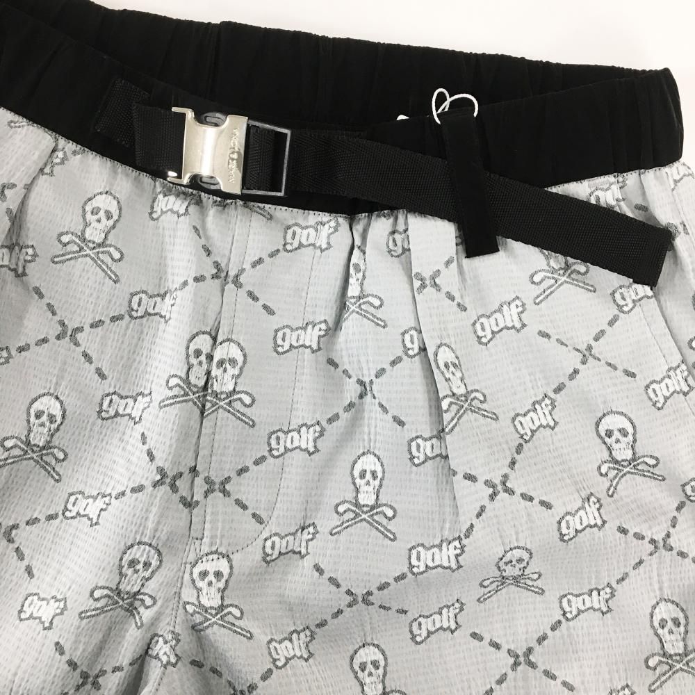 価格 マークアンドロナ ハーフパンツ グレー×黒 スカル総柄 織生地 薄手 メンズ 44 S ゴルフウェア モデル MARK&LONA