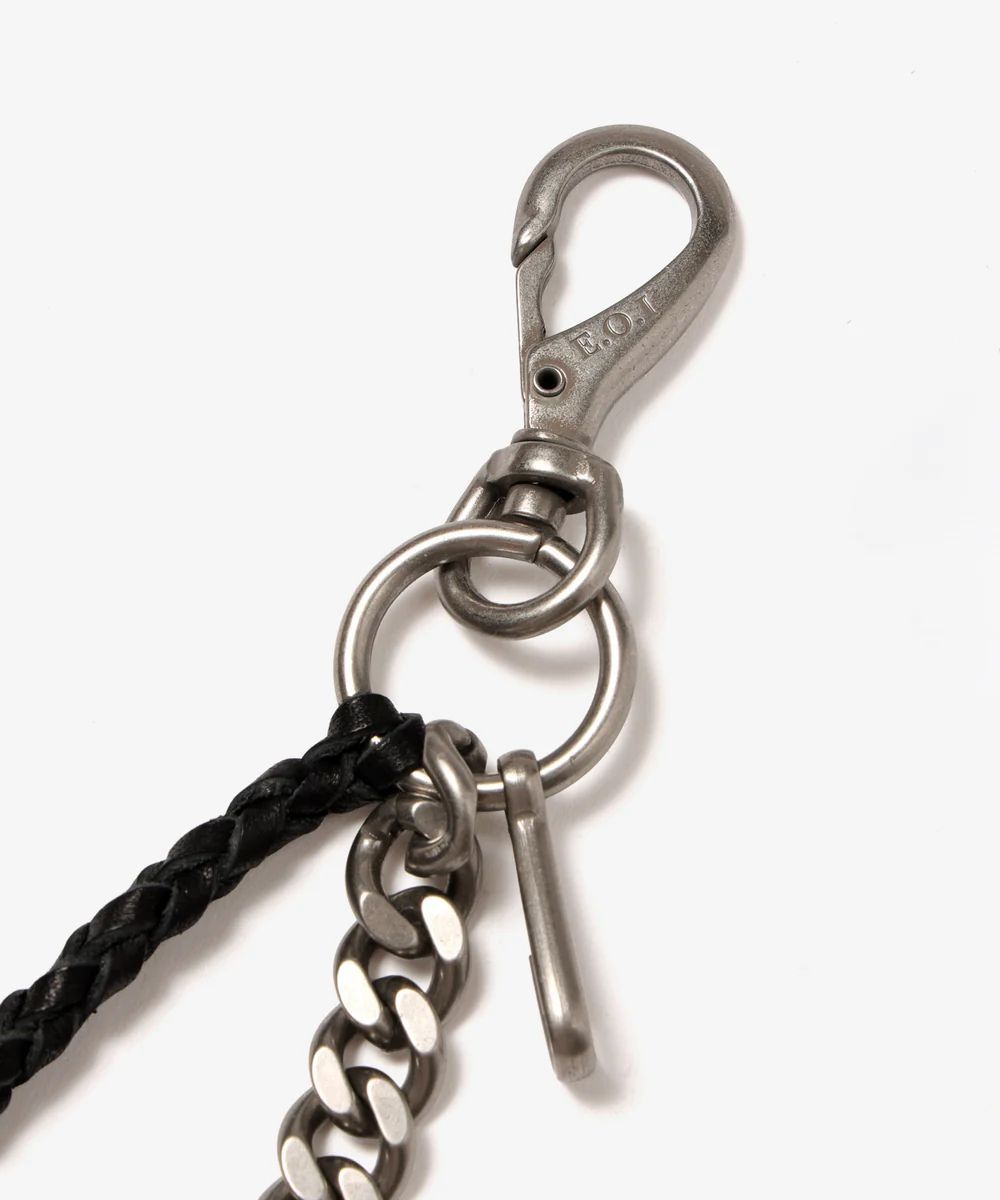 ウォレットチェーンとしてはもちろん、ベルトループに掛けてアクセサリー感覚でコーディネートできるアイテム。シンプルなスタイルに重厚な雰囲気を加えてくれる一本です。