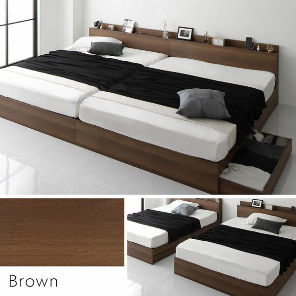 ベッド ワイドキング 280 D 国産ポケットコイルマットレス付 ハード ヴィンテージブラウン 2台セット キャスター付 引き出し収納 ベッド下収納 コンセント付 宮付き 宮棚付き 頑丈 収納ベッド ベッドフレーム ベット 寝具 ワイドキ