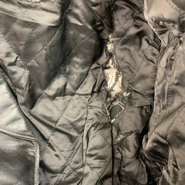 ボタン金属劣化、全体的に汚れ、裏地ダメージ