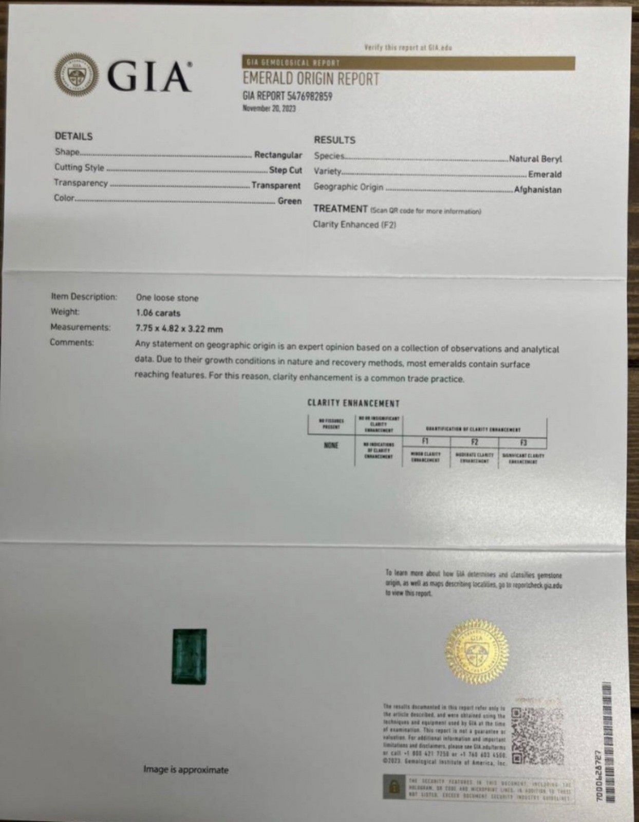 エメラルド 1.06 ct GIA鑑別書付き 7.75㎜×4.82㎜×3.22㎜ ルース 裸石 533 YY