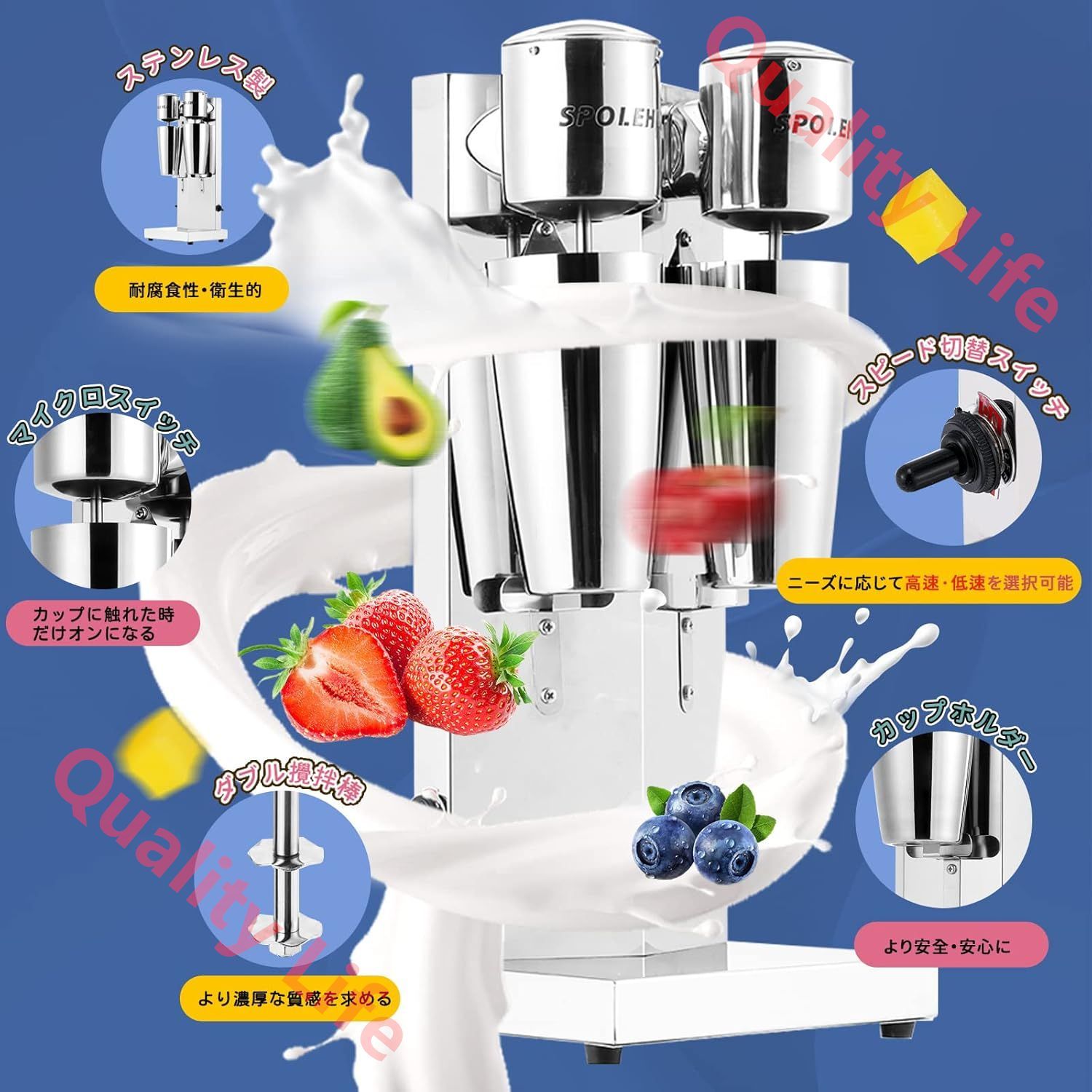 シェイクメーカー 電動 18000回転 min 800 ml ステンレス鋼製 ミルクティー ミルクセーキ フルーツティー 泡立て スムージー レストラン インターネットカフェ 自宅用 業務用