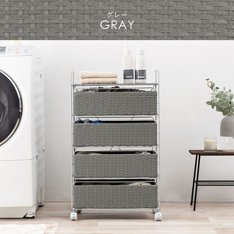 取っ手を持って引出しを運べるので洗濯物の収納や片付けが効率的に。樹脂製なのでお手入れしやすいランドリー収納です。