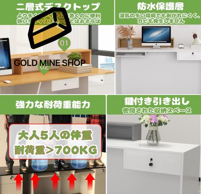 【堅牢な構造】全体レジカウンターは環境に優しい材料である国際的なE1レベルの環境に優しい標準シートで作られており、安心して使用できます。 ボックスは環境に優しい無塗装素材で作られており、取り扱いが簡単で、耐候性、防水性、耐摩耗性、傷がつきにくく、耐久性があります。フレームは安定しており、強力なサポートを提供します。頑丈で耐久性があり、湿気に強いです。 - 防錆性があり、錆びにくい。