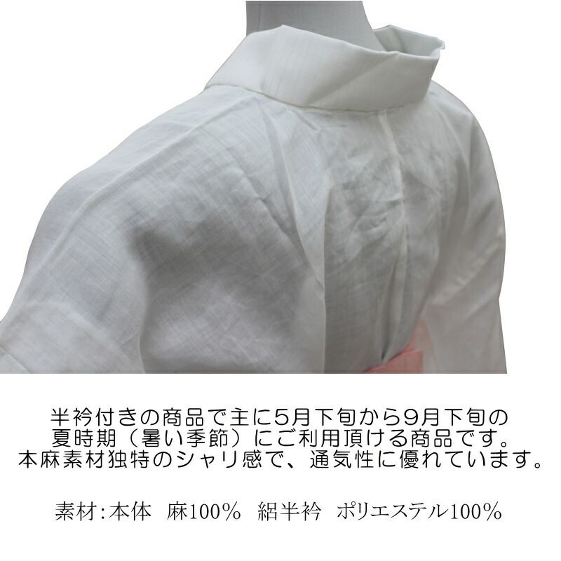 少々難 本麻 長襦袢 S M L LLサイズ有り 天然の涼感素材 夏向き 夏 絽半衿 絽半衿付き レディース 吸汗性 速乾性 通気性 ひんやり 夏用