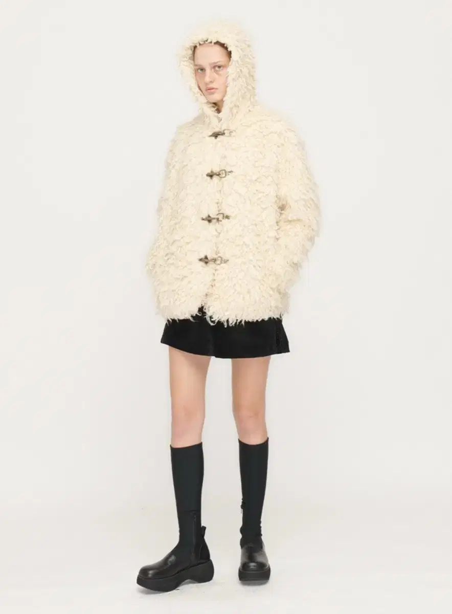 オープンプロダクト openyy シアリング フーディー ダッフルジャケット アイボリー