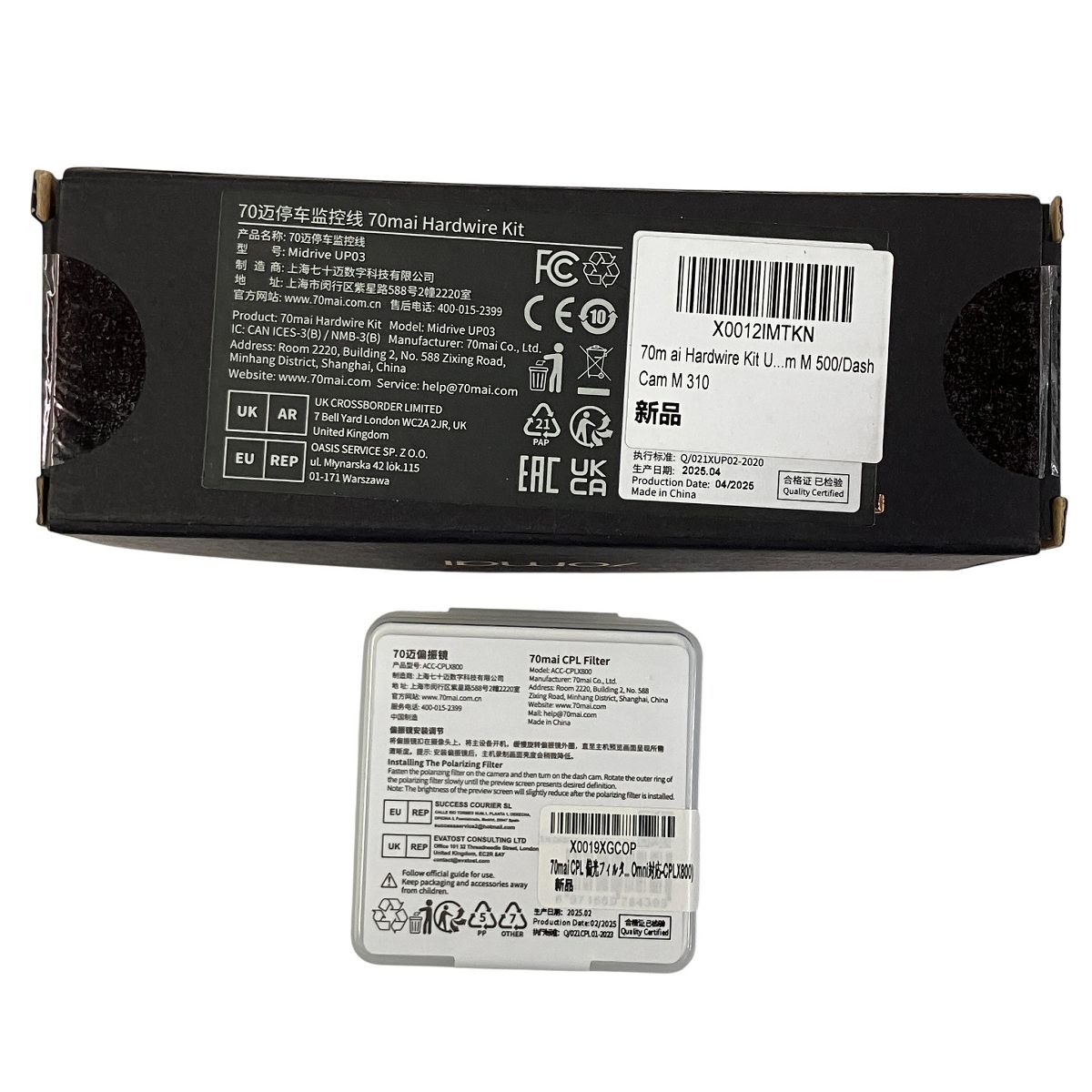 また、別売りの70mai CPL Filter(2025年製)と70mai Hardwire Kit(2025年製)が付属します。
