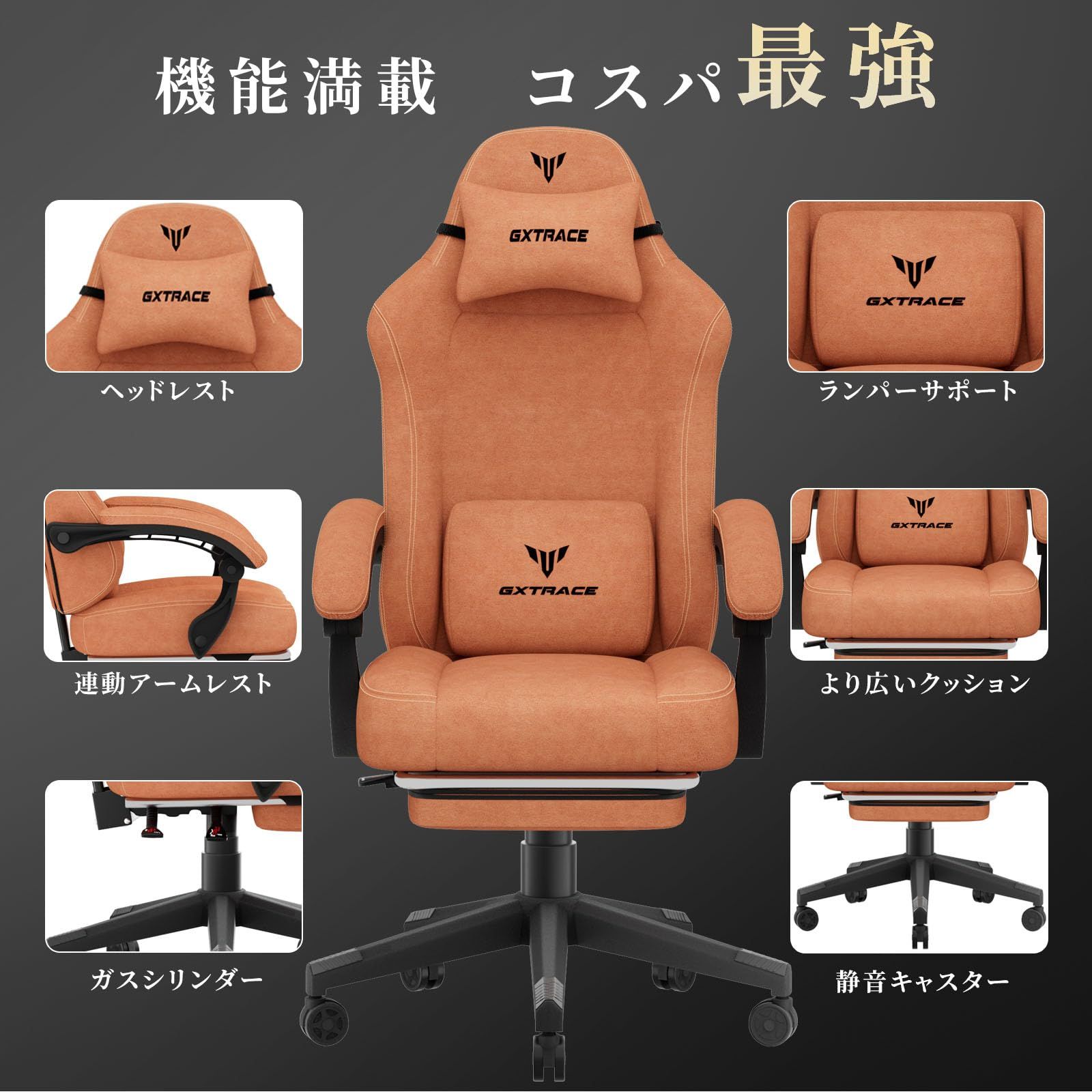 GXTRACE ゲーミングチェア オフィスチェア 椅子 ファブリック 幅広座面&145度リクライニング機能付きパソコンチェア 快適な座り心地 デスクチェア 通気性PCチェア (Orange)