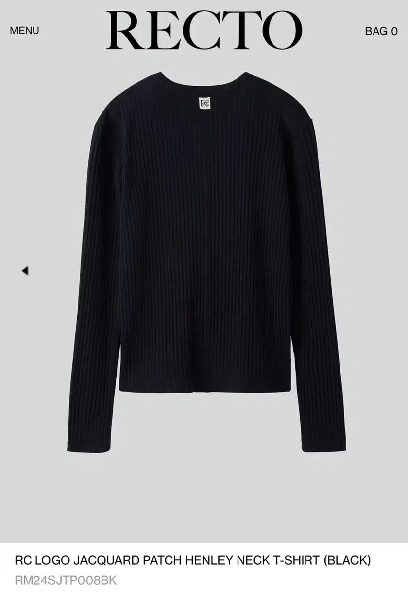 レクト ジャカード パッチ ヘンリーネック ブラック Lサイズ
