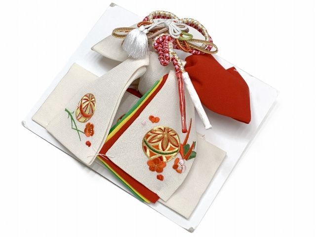 -生成りx赤、鞠と折り鶴-