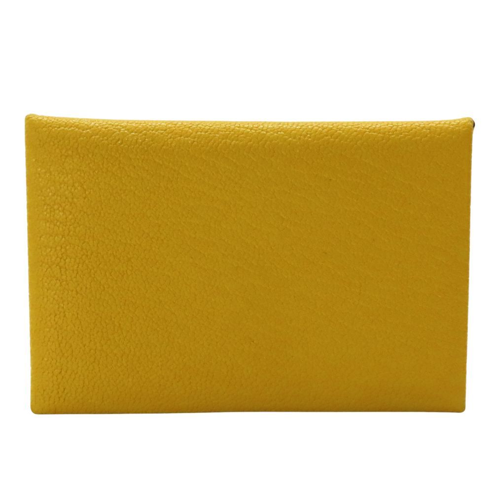HERMES エルメス カルヴィ カルヴィヴェルソ カードケース B刻印 黄色 イエロー系 内側ブルー系 名刺入れ コインケース シンプル メンズ レザー コンパクト 無料ギフトラッピング承ります