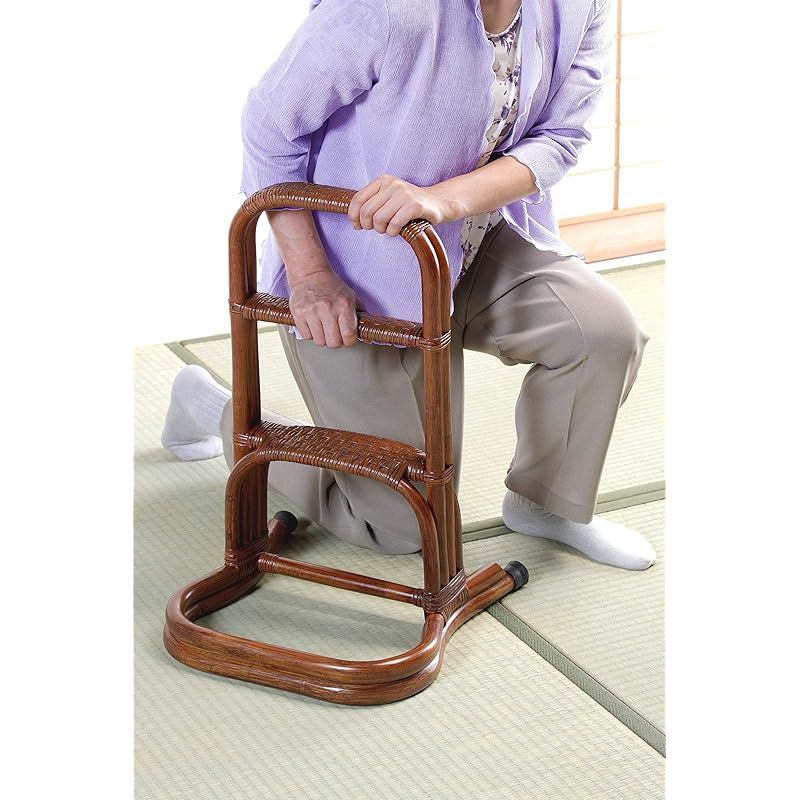 大竹産業 立ち上がり補助器具 玄関台 ブラウン 36 x 38 60 cm 転倒防止 介護手摺 置き型 3段 籐 ラタン OT-204-1 1