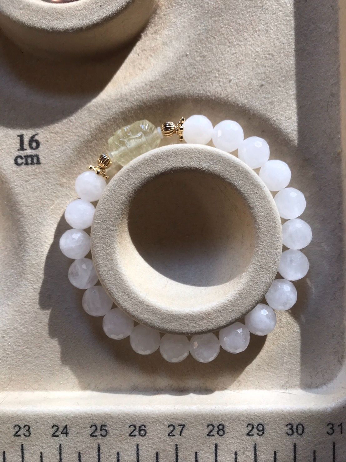 透明度の高い高品質リビアングラスのレアな手彫りガネーシャ神のビーズとスノーマニカラン水晶ミラーボールカットのデザインブレスレットです。