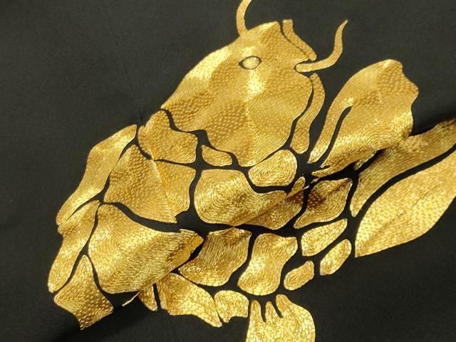 平和屋着物●人間国宝 五代 田畑喜八 黒留袖 駒刺繍 荒磯 金銀彩 正絹 gh